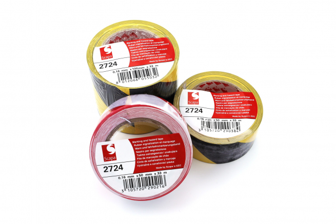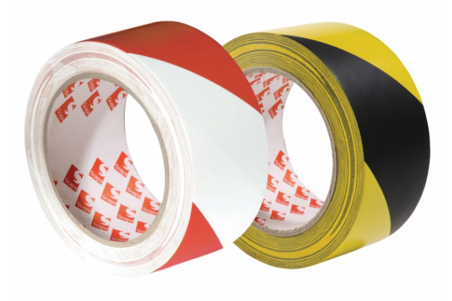 Dvobarvni premium označevalni trak v črno/rumeni ali rdeče/beli kombinaciji. Trak sestavlja visokoodporno PVC hrbtišče prevlečeno z agresivnim kavčukovim lepilom.