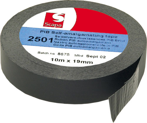 Zelo prilagodljiv samoamalgamirajoči (vulkanizirajoči) trak na osnovi PIB (poliizobutilenske) gume debeline 0,5mm.